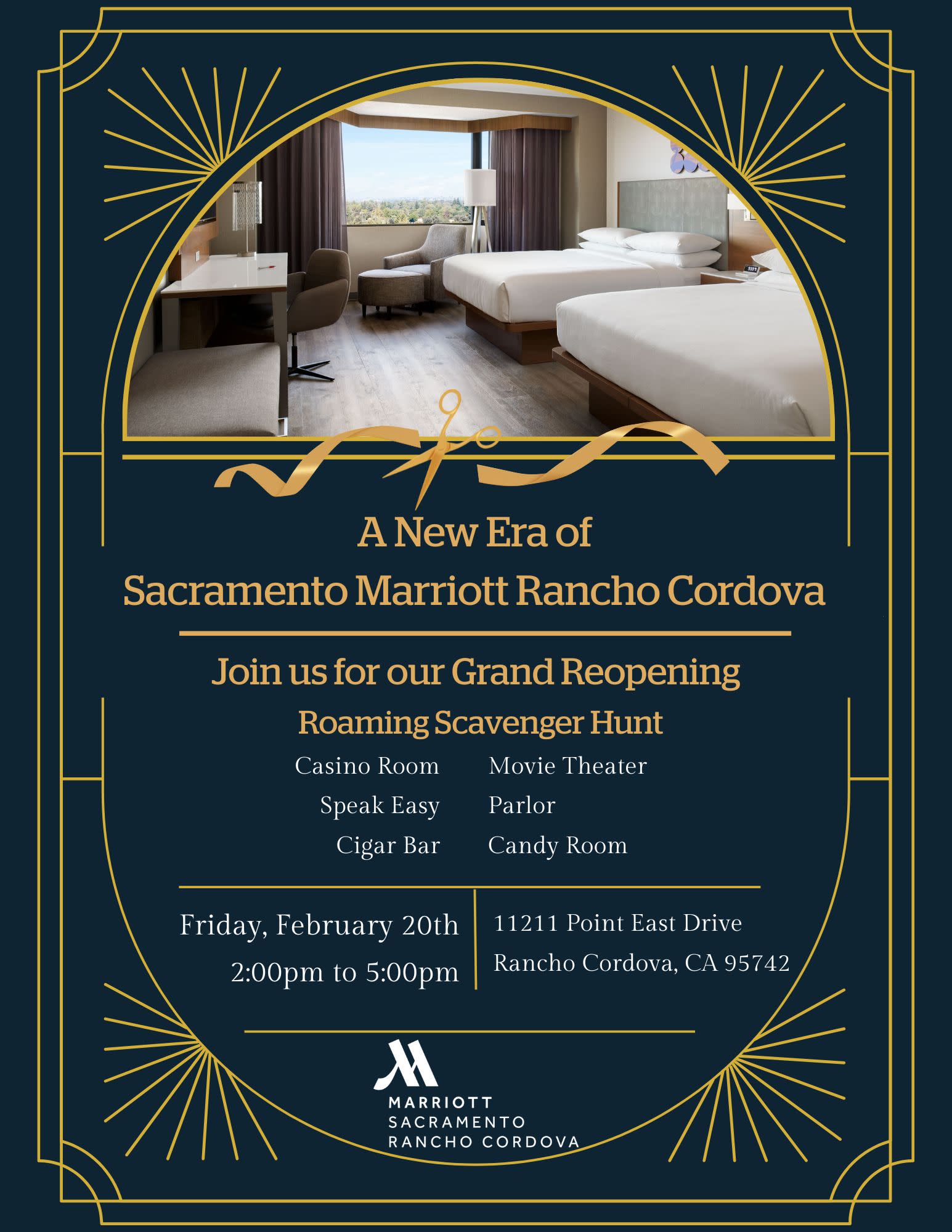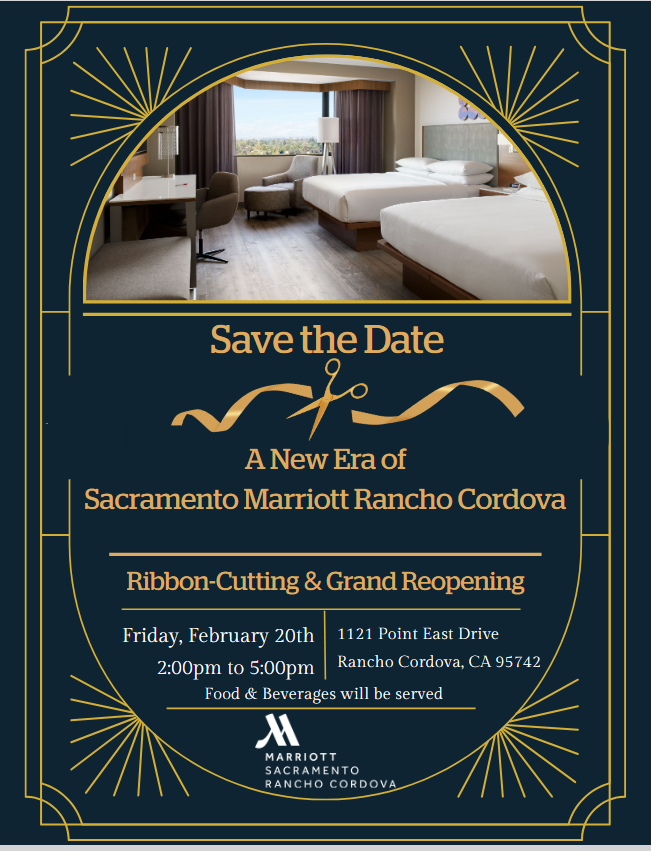 We’re kicking things off with a presentation and ribbon cutting at 2:00 PM, so come be part of this special day as we celebrate Sacramento Marriott Rancho Cordova Ribbon-Cutting & Grand Reopening!