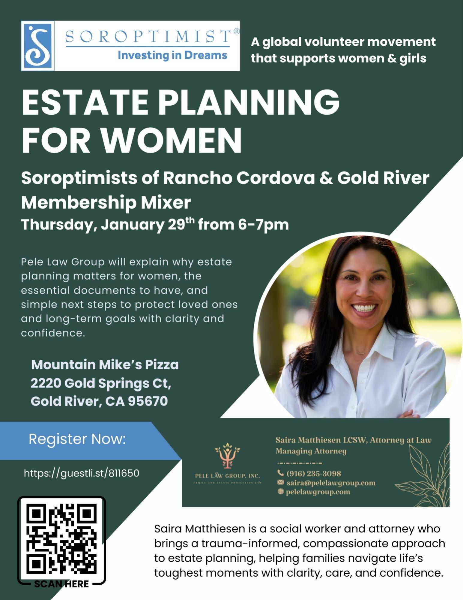ESTATE PLANNING FOR WOMEN Soroptimists of Rancho Cordova & Gold River Membership Mixer
