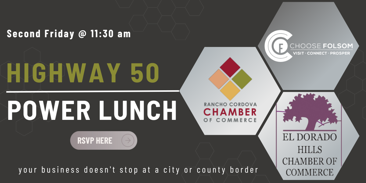 Connect with professionals from the Folsom, El Dorado Hills, Rancho Cordova, and El Dorado County Chambers of Commerce at this month's Highway 50 Corridor Power Lunch—hosted by Rancho Cordova!